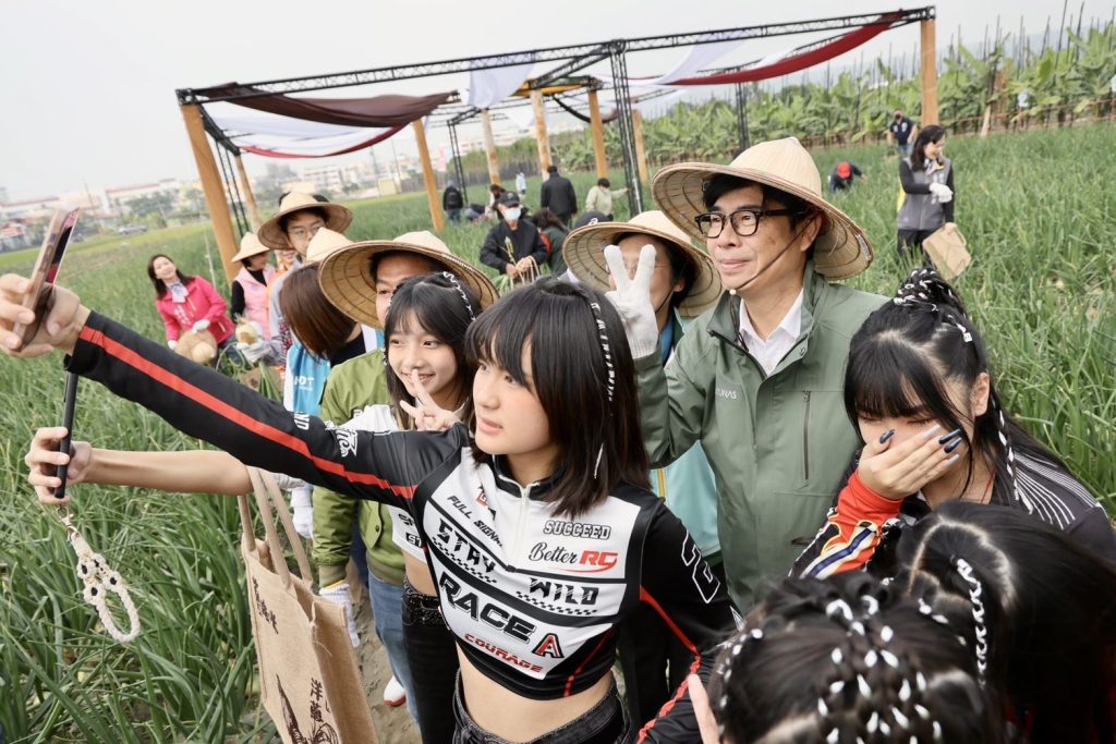 高雄市林園區年度盛事一「蔥啥咪 林園洋蔥節」好評登場,今年洋蔥節規劃農特產品展售市集、雙層巴士導覽、嘟嘟蔥田小火車等特色活動,並展示洋蔥王競賽成果,市長陳其邁今(9)日出席活動開幕式, 用行動和經驗大力推薦林園洋蔥,不僅與在地立委、議員步入田間採摘顆顆碩大飽滿的洋蔥,也身穿圍裙親手捏製洋蔥魚丸,現捏現煮現品嚐,新鮮彈牙的好滋味讓他頻頻點頭,並祝福林園洋蔥大賣,大家成果豐收滿載而歸。