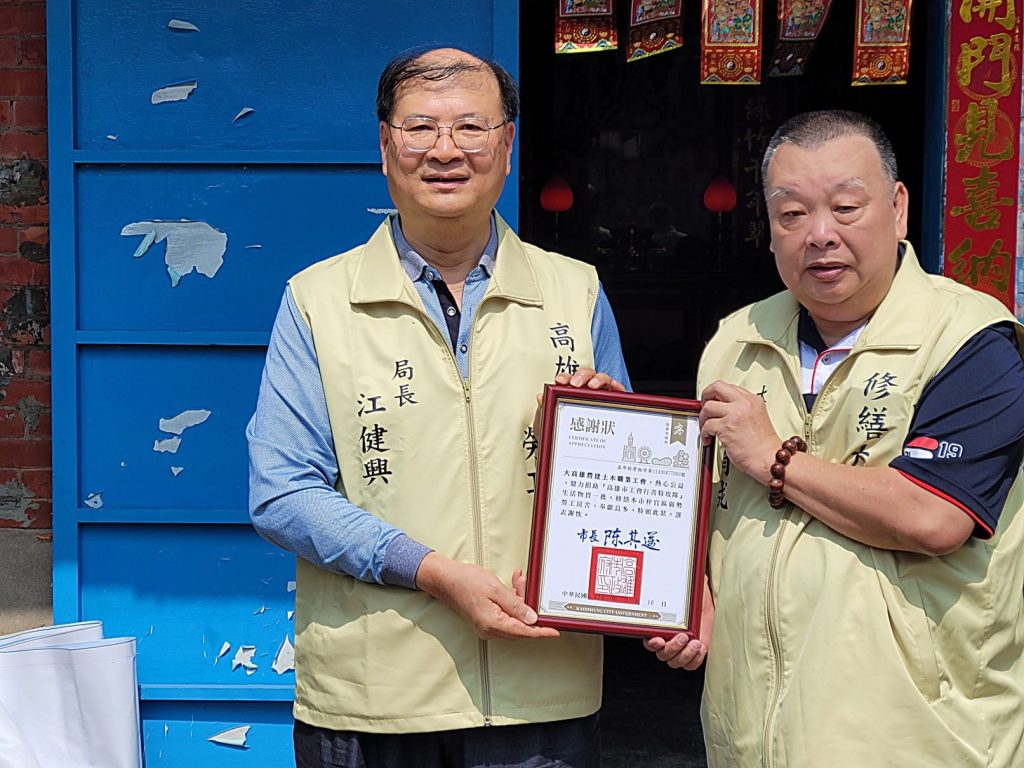 江健興同時也代表陳其邁市長頒贈感謝狀,感謝參與此次修繕救助行動的各界代表。江健興表示,高雄最美是人心,感謝高雄市工會行善特攻隊、高雄市社福慈善總會、大高雄營建土木職業工會等各界熱心公益團體、企業與人士的大力幫忙,得以用最快的速度協助重建家園;今天站在這裡,看著煥然一新的房屋,相信每一位參與修繕救助的伙伴,心裡都充滿成就感,回顧從舊宅的探勘規劃、結構防水、門窗家具等各項施工復原的過程,都彰顯「人飢己飢、人溺己溺」,為善助人刻不容緩的價值,也讓需要幫助的市民朋友獲得及時援助,得以順利重建家園、重拾家的溫暖。