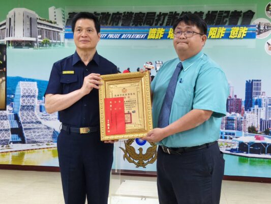 中華郵政細心關懷、防詐成果佳,中華郵政高雄新興郵局經理陳義文、儲匯股股長李淑芬應高市警察局之邀,出席守住民眾錢包最後一道防線記者會,現身分享防詐經驗。
