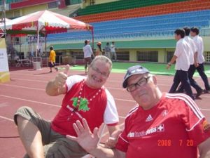 隨後我們到比賽現場,採訪瑞士浮士德球體委會官員Mr. kalbermaflkr(瑞士籍)左邊豎起大姆指這位,問他為什麼那麼熱愛浮士德球?由他介紹表示,中歐人利用浮士德球做為青年教育內容之一,一方面鍛練年輕人的體格、肌力、柔軟性、肌耐力和心肺功能的發展,二來也藉浮士德球比賽認識朋友和結交朋友,也藉團體互動培養年輕人犧牲、合作、團結、和公平競爭美德,同時,也藉助浮士德球訓練和比賽培養年輕人忍耐、服從、負責、和獨立與積極精神。
