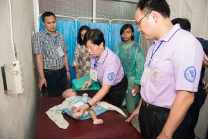 2.2016年關皚麗醫師為水腦症兒做手術前檢查。圖/關皚麗提供