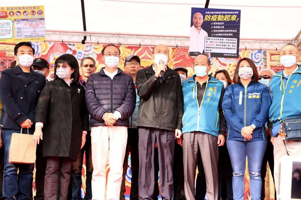 高雄市長韓國瑜今(29)日下午與民政局長曹桓榮至覆鼎金保安宮參香祈福,祈願大年初五百工百業開展之際,大家平安健康、萬事如意。參拜過程中,韓國瑜全程戴著口罩向民眾宣導武漢肺炎的正確防疫觀念,鼓勵市民朋友團結以配合政府的防疫重點,並呼籲戴口罩、勤洗手、注意個人衛生習慣,隨時做好防範因應措施。