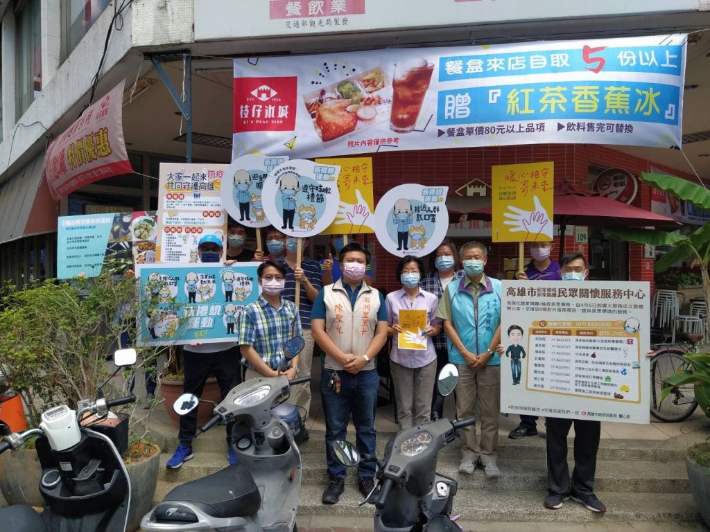 高雄市政府發起「暖心相守寄未來」活動,旗山區今日接棒支持,相挺老街優質店家,由區長謝健成偕同在地里長、公所同仁前往旗山老街,預購在地知名店家餐券、餐盒及甘蔗汁,勉勵公所在防疫第一線的工作同仁,也希望透過消費振興老街經濟,減少疫情帶來的衝擊。