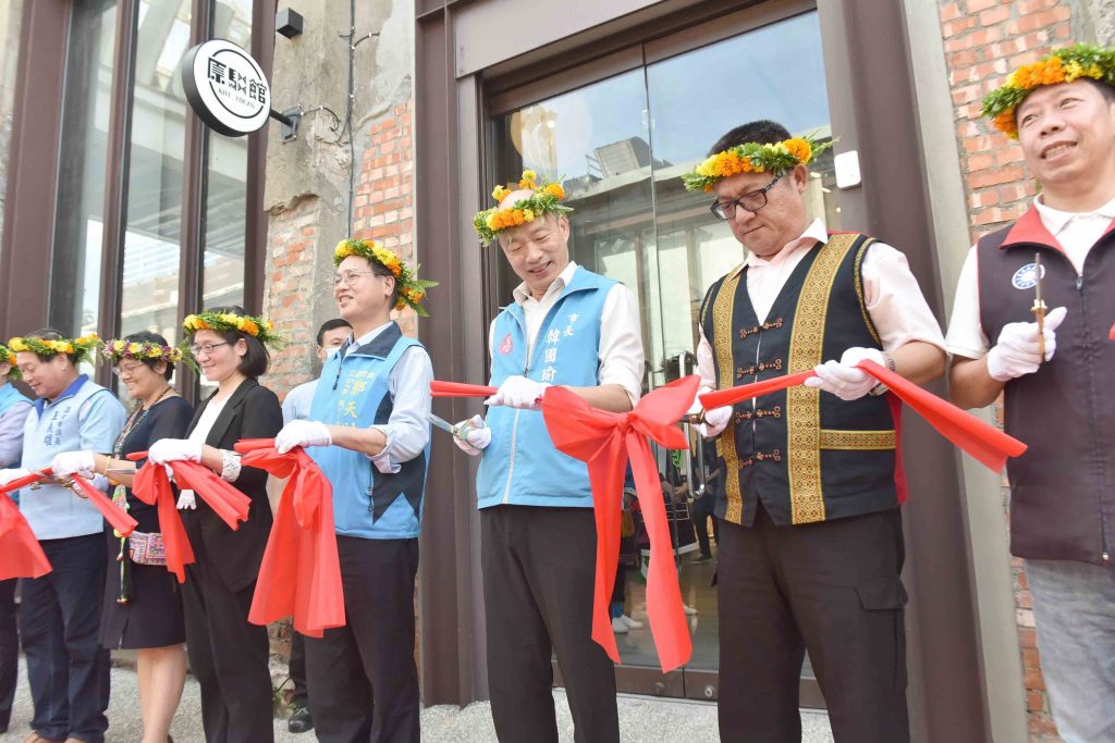 原駁館下午於C8-18倉庫熱鬧開館,開幕活動邀請享譽國際的「祖韻文化舞樂團」開場表演,展現臺灣16族原住民的多元族群、共融包容,特色歌舞及衣著服飾驚豔全場,剪綵後,韓國瑜入內參觀,在職人導覽解說下,一一走逛館內的文創商品、特色服飾、琉璃工藝、陶藝創作,推廣原鄉部落的文化風情,也為族人熱情打氣。