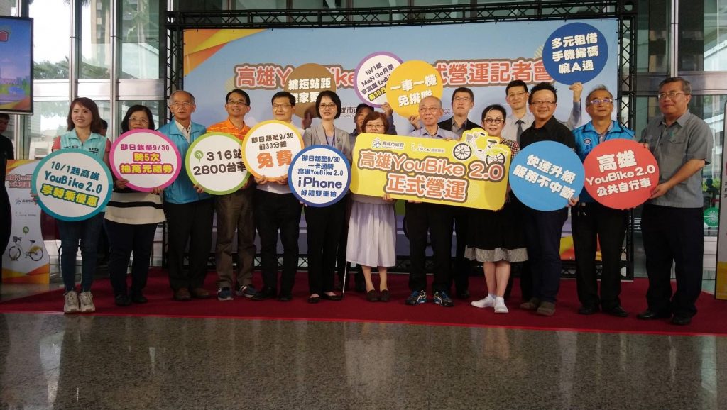 CityBike功成身退,高雄YouBike2.0於7月1日起正式營運。副市長王世芳表示,高雄YouBike 2.0公共自行車6月16日試營運至今好評不斷,累計已超過15萬人體驗,今年7月1日起正式營運,目前已提前達成原C-bike租賃站316站營運規模,預計9月1日前既有C-bike租賃站將全面升級為YouBike 2.0系統,屆時全市將超過550站租賃站。
