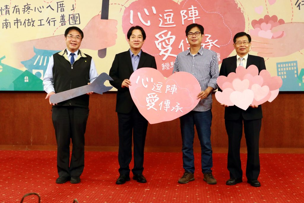高雄市代理市長楊明州今(21)日率市府社會局、勞工局召開「心逗陣 愛傳承」經驗交流記者會,同時與會的有副總統賴清德、台南市長黃偉哲、新科高雄市長陳其邁及台南市做工行善團,相互分享照護弱勢、行善義舉的各項措施。他提到賴副總統時任台南市長期間,推動結合各修繕相關工會志工,協助弱勢職災勞工家庭及獨居長者修繕房屋的計畫,讓他心頭為之一亮,進而關懷弱勢朋友的居住環境。