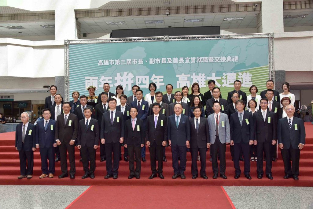 高雄市政府今(24)日上午於四維行政中心舉行高雄市長、副市長及首長宣誓就職交接典禮,由行政院秘書長李孟諺擔任監誓人進行監交儀式,高雄市長陳其邁就職演說表示,今(109)年是高雄面對挑戰的新起點,希望以包容合作取代分歧對立,強調從今天起捲起袖子認真打拚、解決問題、力拚建設,讓高雄大步邁進,以回應市民朋友的期許與託付。