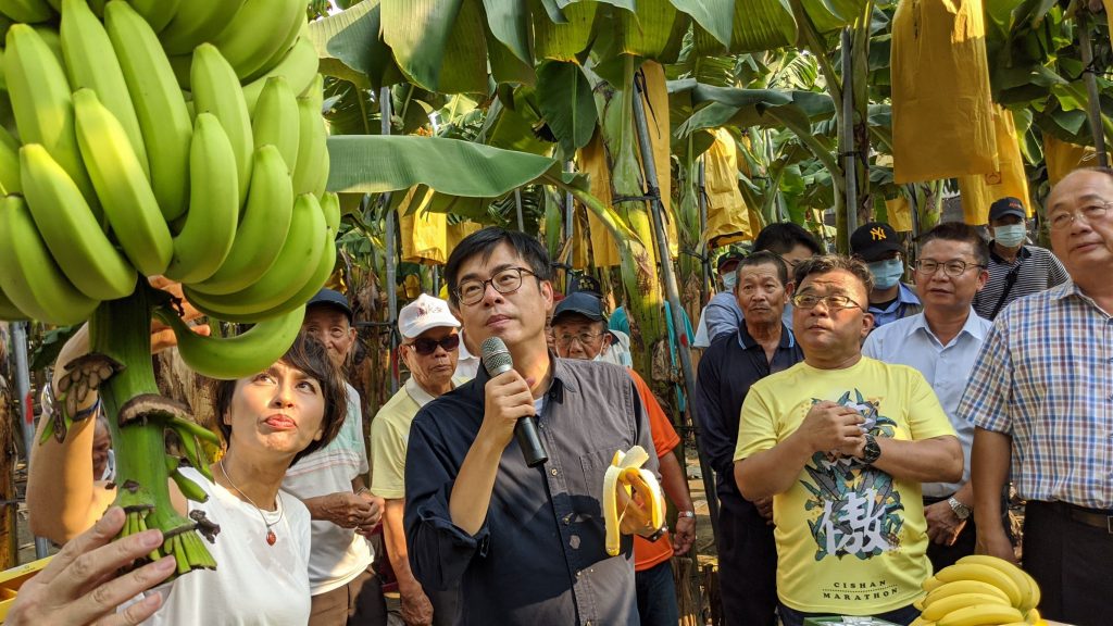 高雄即將於10月進入秋冬蕉的產季,為協助蕉農產銷並穩定香蕉價格,高雄市長陳其邁繼昨日赴旗山關心蕉農與香蕉產業後,登高一呼號召企業以實際行動支持高雄香蕉,獲得口罩國家隊響應,口罩大廠南六企業、臺灣區不織布工業同業公會等立馬下訂採購250萬元香蕉,另外高雄港都上市櫃企業家協會(簡稱港都會)也將發動該協會60家上市櫃會員廠商,進行認購連署,力挺高雄蕉農。