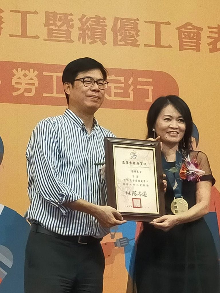 高雄市長陳其邁今(12)日在圓山飯店表揚今年度85位模範勞工與38家績優工會,感謝他們堅守崗位與辛勞付出。