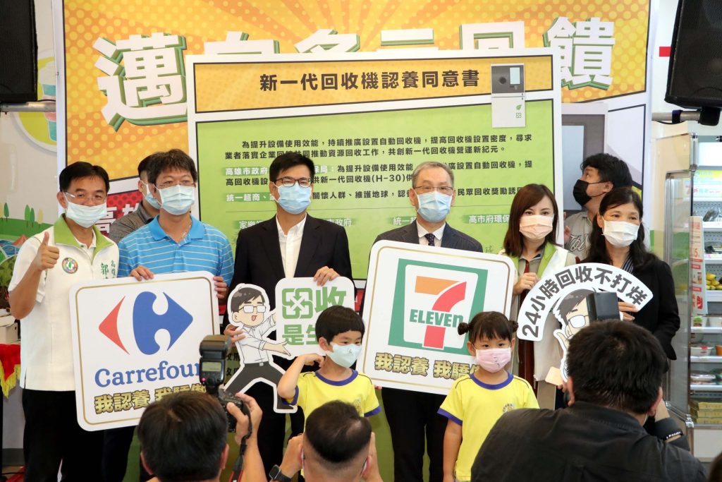 為提升設備使用效能,提供市民朋友更便利的回收環境,即日起於7-ELEVEN (長權、興陽門市)及家樂福(鼎山店),設置最新型三代自動回收機 (TOMRA,H-30)供本市市民使用,市民朋友可於購物前持寶特瓶到店家做回收,並由7-ELEVEN及家樂福提供回饋金(於7-ELEVEN回收,每4支寶特瓶可得1元回饋金;於家樂福回收,每5支寶特瓶可得1元回饋金),在店內購買商品時可折抵消費。