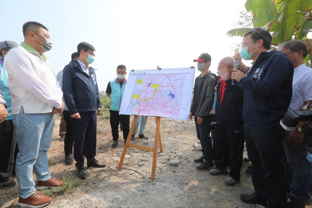 高雄市長陳其邁今(14)日視察北屋排水及草潭埤南、北滯洪池開闢現地,他表示,仁武地區人口成長快速,解決水患議題為當務之急,北屋排水整治及草潭埤滯洪池開闢完工後,將減緩仁武北屋排水沿岸淹水情形,並保有愛河水系源頭生態環境,完成愛河最後一哩路整治。
