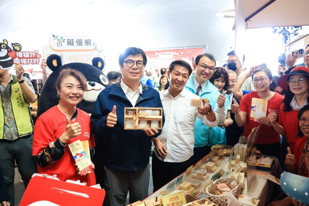 為推廣高雄市身障團體中秋節禮盒,市長陳其邁今(3)日出席衛武營榕樹廣場舉辦「禮雄好,幸福共好」秋節禮品推廣活動,現場頒發感謝狀予認購滿額企業、個人,並感謝國際獅子會300E-5區擔任公益推廣大使,宣布市府去年購買800盒秋節禮品,今年加碼到1,000盒,更化代言人至各展示攤位參觀、推銷、逐一為身障團體加油打氣。強調禮盒內容豐富、多元,是身障朋友認真、用心的作品,有吃又有拿、好吃又實用,邀請大家發揮愛心,用實際行動力挺身障團體。