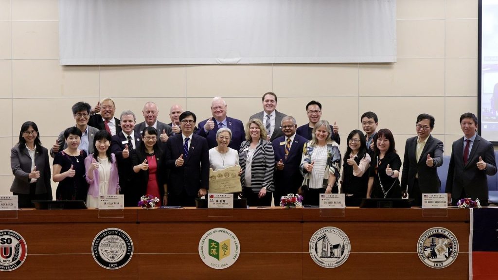 高雄文藻外語大學為積極拓展臺美學術交流,與美國西奧勒岡大學、東奧勒岡大學、南奧勒岡大學以及奧勒岡理工大學共同簽署姊妹校MOU。高雄市長陳其邁今(15)日出席見證簽署儀式,美國在台協會高雄分處長張子霖(Neil H. Gibson)與高雄市議員身兼市議會國民外交促進會長的林智鴻議員也一同出席,陳其邁市長表示未來期盼能與奧勒岡州、姊妹市波特蘭市、州議會以及州市府合作,在安全、城市治理、教育、淨零及數位轉型等議題上有更多交流、相互成長,共榮共好。