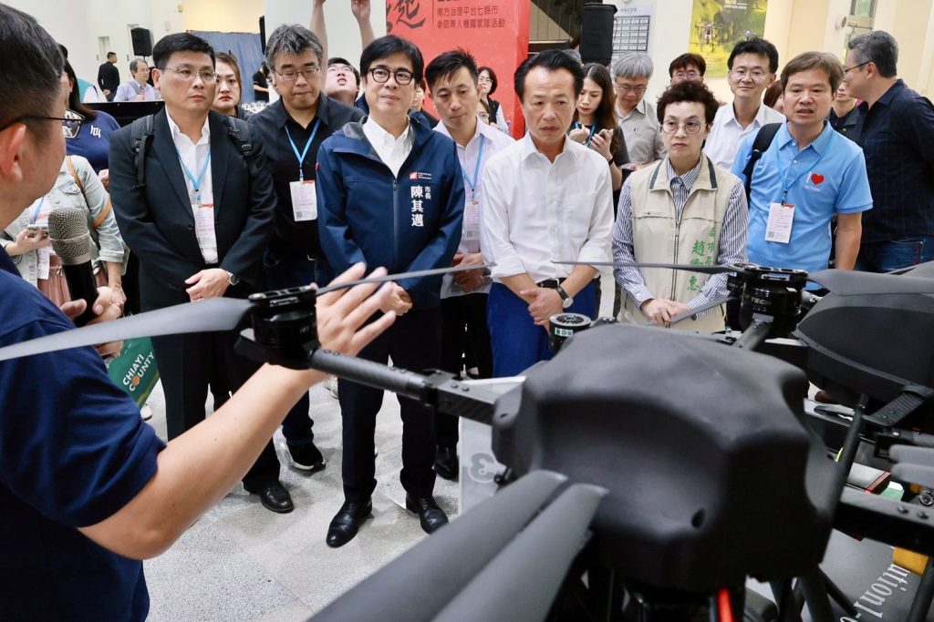 會後,陳其邁也前往參訪亞洲無人機AI創新應用研發中心,聽取各式新型先進無人機應用,從設計、研發到生產,應用至各個領域,包括軍事、國防、安全、消防等令人嘆為觀止,將會是全球最完整的研發與供應鏈的基地。